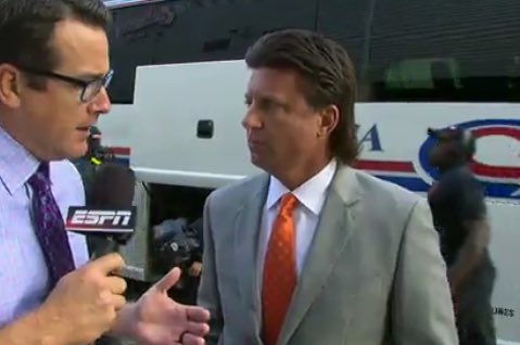 Встреча двух бывших тренеров Техаса: Мака Брауна и Чарли Стронга. Первый комментирует игры для ESPN (и в частности последнюю встречу быков), второй тренирует Южную Флориду