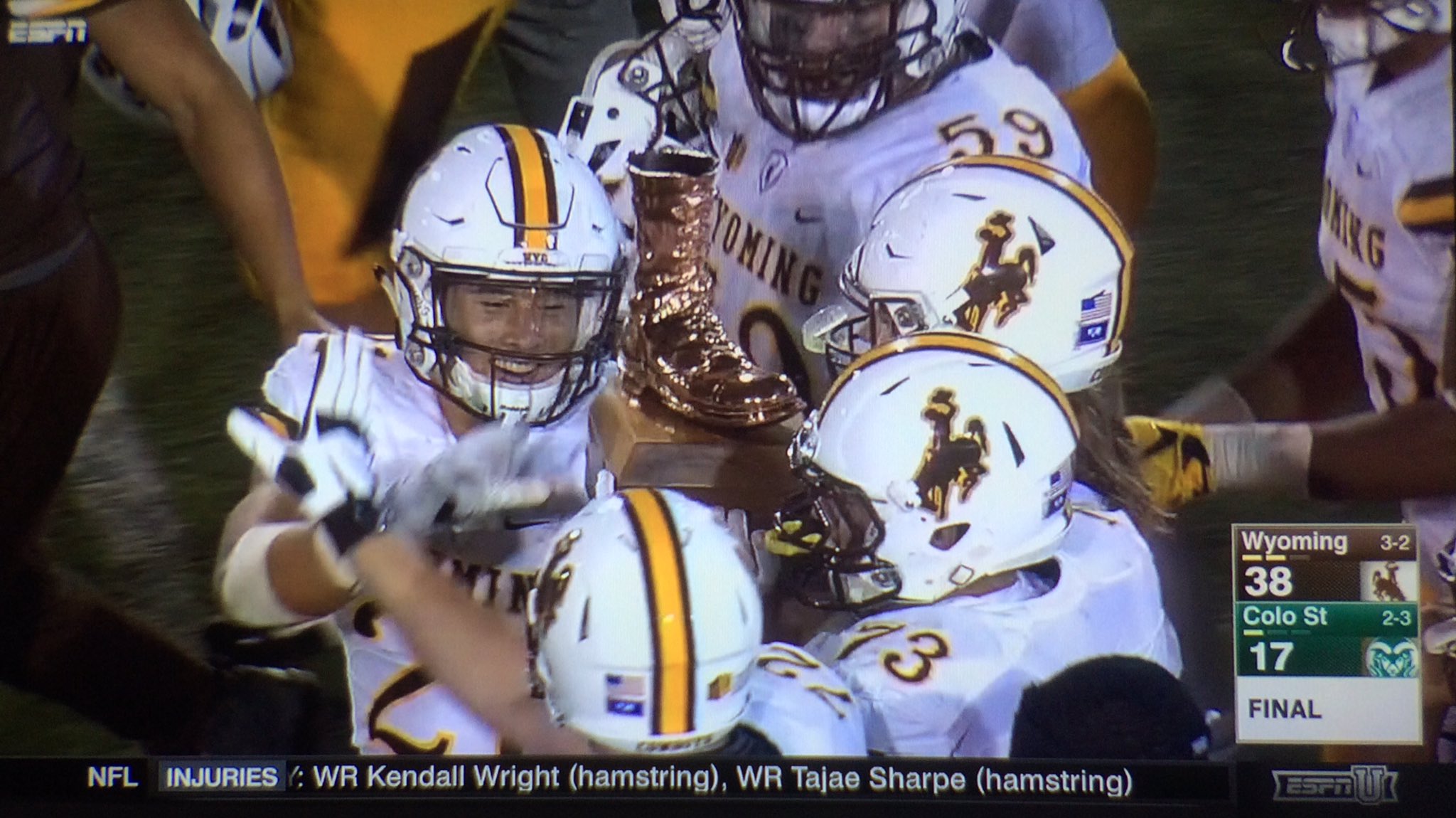 А вы знали, что за победу в матче Колорадо Стейт и Вайоминга вручается Бронзовый ботинок? Теперь знаете.