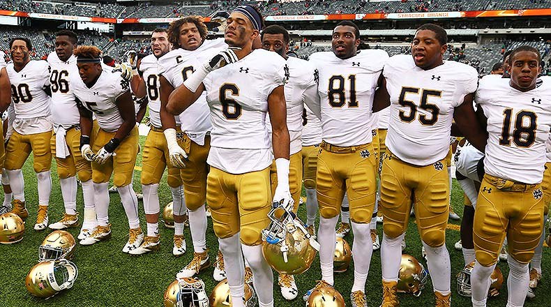 Привет! И вновь с вами очередной выпуск цикла статей о студенческих командах по американскому футболу! Но сначала, для полного погружения в дальнейший текст, представим себе: старинная улочка Дублина, вы сидите в уютном пабе, попивая пинту Гиннесса, вокруг только рыжие ирландцы и вы вместе, от всей души, поддерживаете команду, не чуждую даже далекой от США Ирландии – NOTRE DAME FIGHTING IRISH!