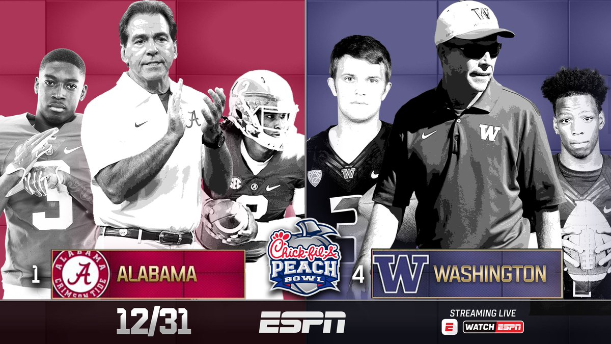В первом полуфинале 31 декабря в 23:00 по московскому времени Алабама (13-0) сыграет против Вашингтона (12-1).